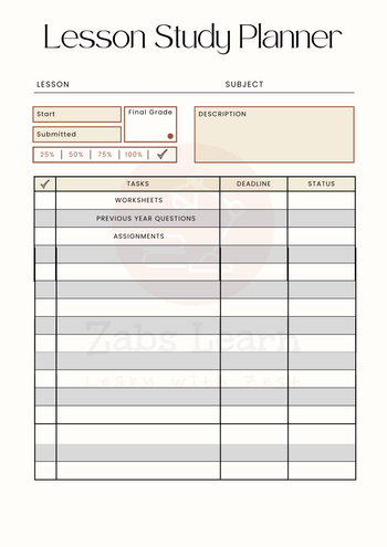 Lesson Study Planner (Subject, Tasks, Deadlines, Resources) → 5–7 min per subject/session