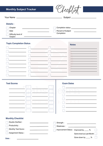 Monthly Subject Tracker / Test Scores → 10–15 min weekly or after exams
